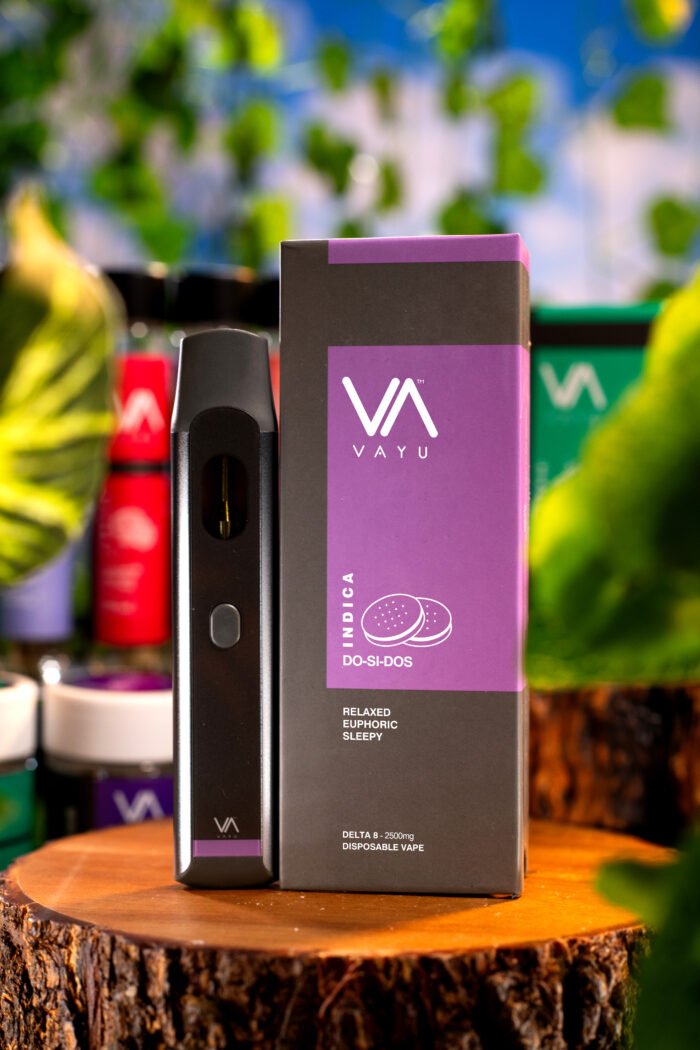 Indulge in the deep serenity and sumptuous flavors of VAYU’s Dosidos Delta 8 2500mg Disposable Vape. Each puff unveils the robust Indica heritage of Dosidos, known for its distinctive gassy cookie essence and profound tranquillity.